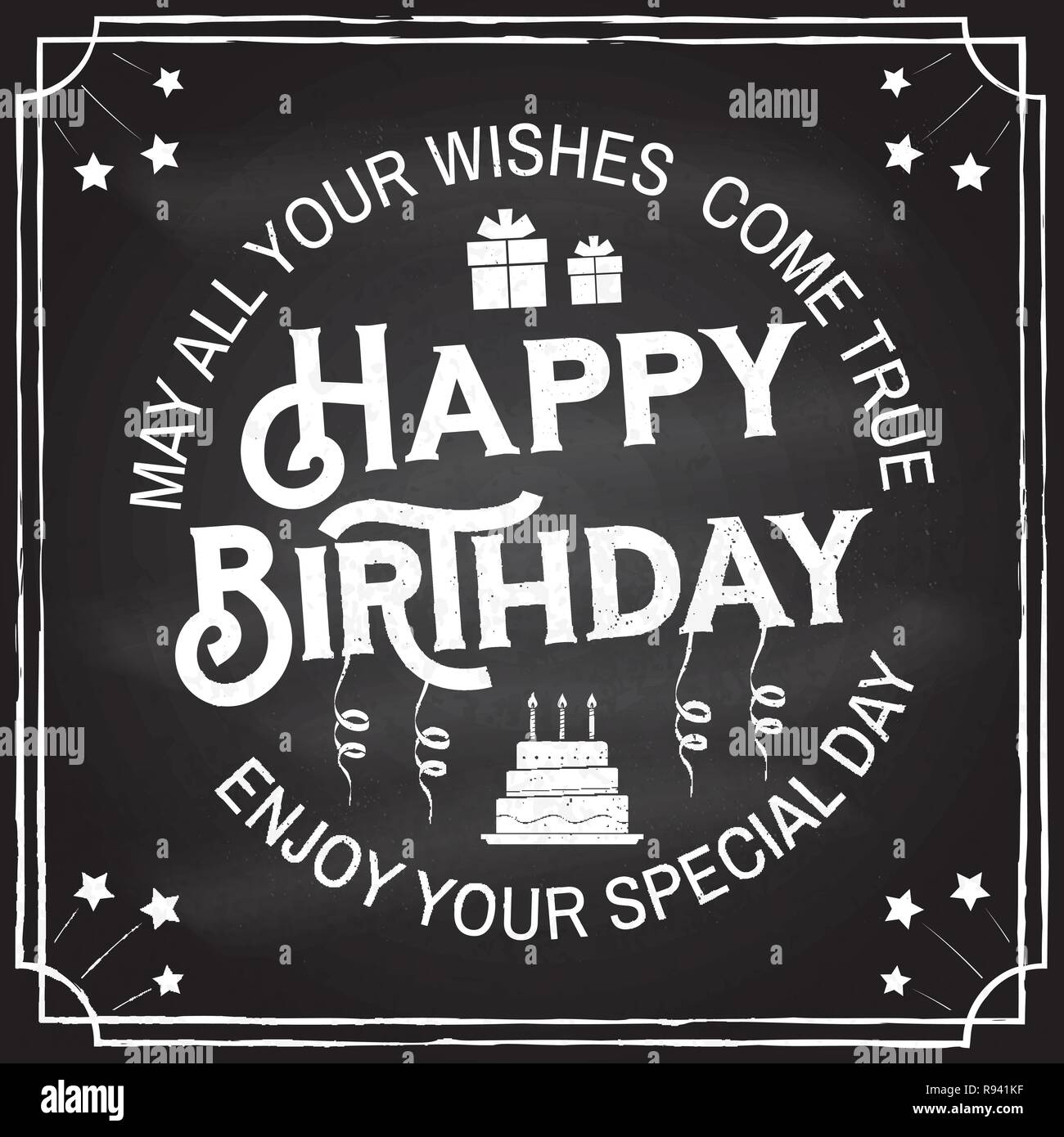 May All Your Wishes Come True Happy Birthday Stamp Badge Sticker Card With Gifts And Birthday